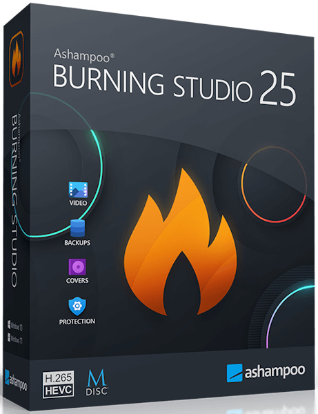 Ashampoo Burning Studio 25 — это самый удобный способ для надёжной записи твоих данных и копирования CD, DVD и Blu-ray дисков без усилий. Конвертируй аудиодиски и выполняй резервное копирование своей музыки или создавай собственные музыкальные сборники с подходящей обложкой! Дополнительные первоклассные мультимедиа функции также позволяют тебе создавать тебе видео и слайд-шоу, и даже позволяют тебе записывать их на с изящным анимированным меню.