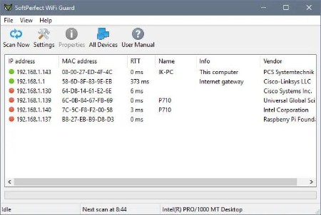 SoftPerfect WiFi Guard is an essential tool for everyone running a small wireless network and striving to keep it safe and secure. Generally, modern Wi-Fi networks are well protected, but there are a number of weaknesses that can compromise your Wi-Fi password; this includes vulnerabilities in encryption and brute force attacks. As a result, someone can gain unauthorised access to your Internet connection and LAN and exploit them while staying unnoticed.