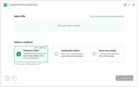 Find your Excel password from the built-in or homemade dictionary and decrypt it.
