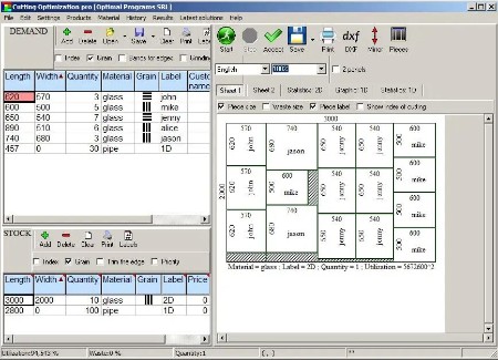 Cutting Optimization Pro is a cutting software used for obtaining optimal cutting layouts for one (1D) and two (2D) dimensional pieces. The software also lets you to define and handle complex products, such as table, desk, cupboard, locker, book shelf.