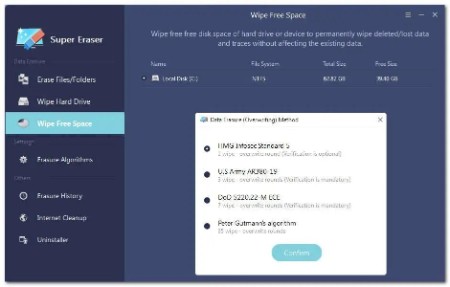 • Wipe Free Disk Space - securely wipe unused disk space and erase all the lost data or traces on your hard drive without affecting your existing files.