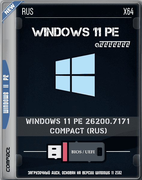 Windows 11 PE Compact — загрузочный диск, основан на версии Windows 11 25H2 [26200.7171]. Предназначен для установки операционных систем, быстрой диагностика железа, настройки лежачей системы, бэкап системы, драйверов, перенос файлов пользователя, восстановление загрузчиков, сброса паролей и т. д.