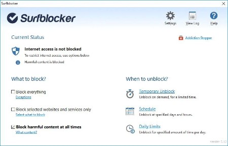 With Surfblocker you can easily restrict internet access at specified times or on demand. You can allow and block websites and limit which programs and features have access to the internet. For example, you can allow only e-mail and and work or study related websites. You can also simply password protect internet connection or set it to be automatically disabled after a specified amount of time. Of course, you can also block harmful and hazardous content automatically.