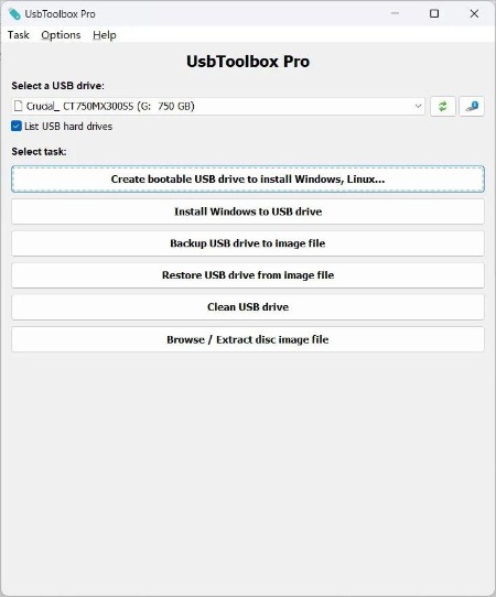UsbToolbox is a bootable USB drive creation tool, which supports ISO files of Windows, Linux, and other popular operating systems. It also includes some useful functions, such as installing Windows to USB drive, cleaning USB drive data, creating USB drive image file, and extracting disc image file.