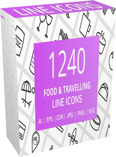 Название: Creative Market - 1240 Food & Travelling Line Icons - 2037447
