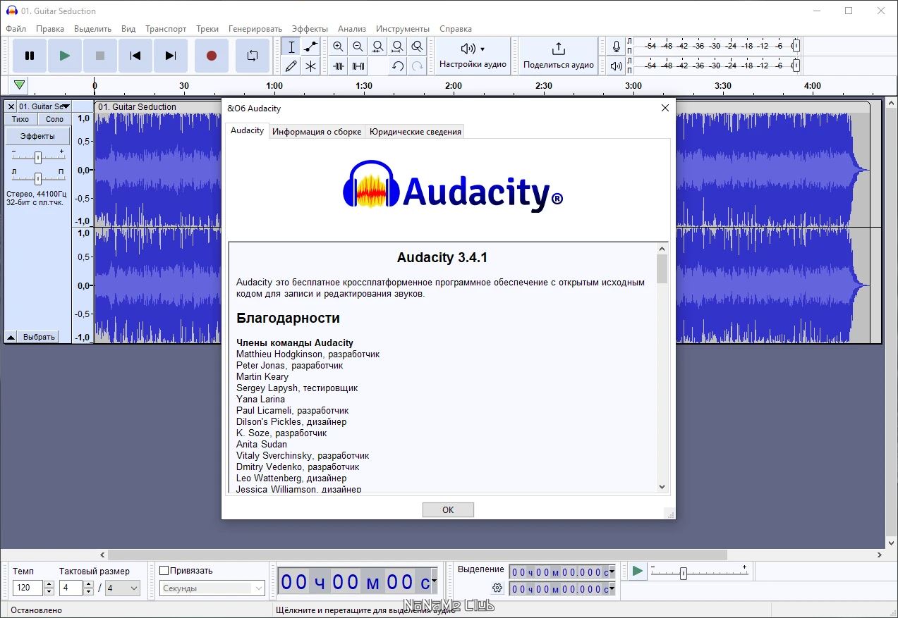 • Экспорт в MP3 при помощи кодировщика LAME.
