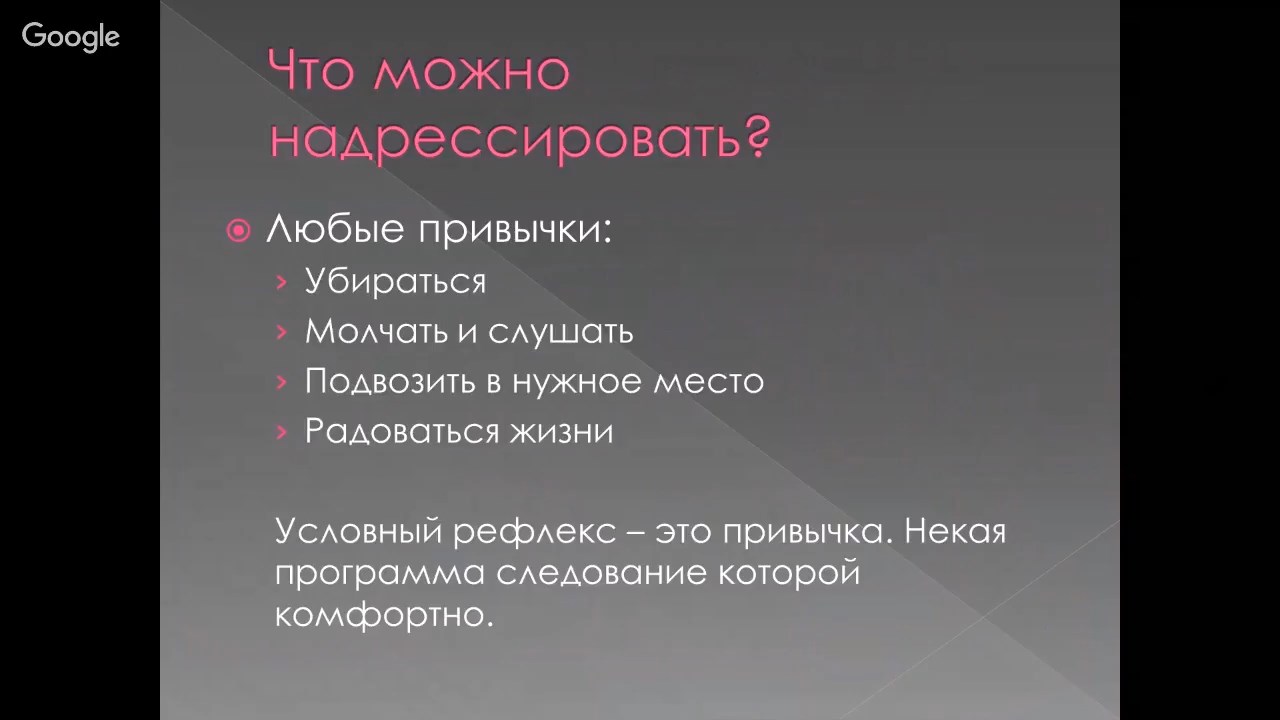 Даже если дрессируемый знает, что именно и как вы делаете – это всё равно работает. Но, конечно, ещё лучше работает – если работу по дрессировке проводить изящно и незаметно.