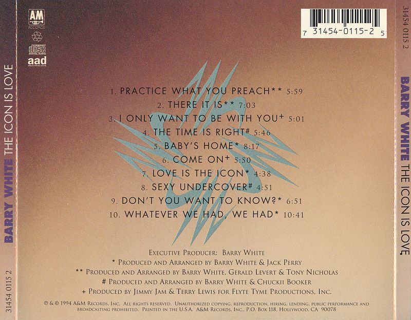 The Icon Is Love - девятнадцатый студийный альбом Barry White, вышедший на лейбле A&M Records 4 октября 1994, и ставший самым успешным его альбомом с конца 1970-х. Альбом достиг 1-й позиции в the Billboard R&B album charts и 20-й отметки в the Billboard pop charts. Это был также первый альбом Barry за 16 лет, который достиг the UK top 50. В 1996 The Icon Is Love был номинирован на Grammy в категории Best R&B Album.
