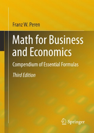 This textbook contains and explains essential mathematical formulas within an economic context. A broad range of aids and supportive examples will help readers to understand the formulas and their practical applications. This mathematical formulary is presented in a practice-oriented, clear, and understandable manner, as it is needed for meaningful and relevant application in global business, as well as in the academic setting and economic practice. The topics presented include, but are not limited to: mathematical signs and symbols, logic, arithmetic, algebra, linear algebra, combinatorics, financial mathematics, optimisation of linear models, functions, differential calculus, integral calculus, elasticities, economic functions, and the Peren theorem.