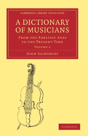 The publisher John Sainsbury produced this two-volume biographical dictionary of musicians in 1824. The book, as he acknowledges on his title page, borrows from the previously published works of Choron and Fayolle (in French), Gerber (in German), Orloff (Russian, writing in French), and his two notable English predecessors, Dr Burney and Sir John Hawkings. It contains a 'summary of the history of music', as well as biographies and memoirs of musicians. The range of the information provided is immense, including the most obscure as well as the most famous: fourteen pages on Mozart are followed by paragraphs on his wife Constanza and on the now completely forgotten B. F. Mozin, a French piano teacher and composer, while Beethoven is described when still living and composing, albeit afflicted by deafness. This work is a mine of information on musical life and perceptions of music history in the early nineteenth century.
