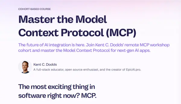 The future of AI integration is here. Join Kent C. Dodds' remote MCP workshop cohort and master the Model Context Protocol for next-gen AI apps.
