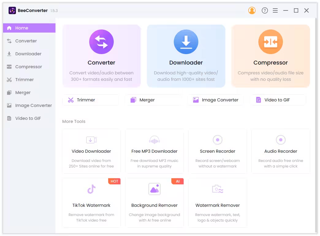 Instead of downloading a heavy professional video editor, The built-in video trimmer and video merger of BeeConverter can help you trim videos in a simple way, and enables you to merge all video clips into one as quick as a flash, no matter how large the files are.