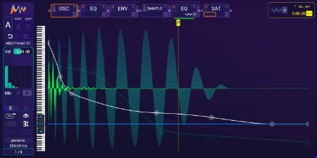 KickDrum precision bassdrum synthesis | A digital dancefloor kick is basically a sine wave oscillating from a high pitch to a low pitch - simply put. But when it comes to shaping the pitch curve and leveling certain bands a dimension of endless possibilites opens. KickDrum was created to achieve maximum precision with an intuitive workflow, while exploring this dimension, aiming to achieve the desired sound in a short time.