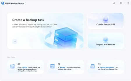 Deletion, overwrite, corruption or sudden crash can cause data loss. To keep data safe, easily create a backup of your files, partition, disk or system with 4DDiG Windows Backup. Create a backup task, select what you want to backup and where you store the backup. Complete the backup process, and you can restore it at anytime.