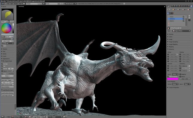 · Armature (skeleton) deformation with forward/inverse kinematics, auto skinning and interactive 3D paint for vertex weighting