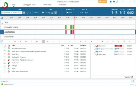 ManicTime automatically records your computer usage. It remembers which apps you've used and for how long. It will also remember which web sites you've visited and which documents you've worked on. All this data will help you keep track of your work hours.