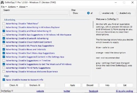 DoNotSpy11 empowers you to protect your privacy on Windows 10 and Windows 11.