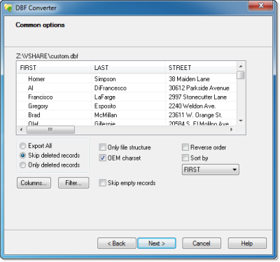 Data filtering in DBF Converter is visual. This means the program takes a sample of records in the DBF file and allows you to apply custom filter rules and masks and instantly see the sample changes according to your choice.