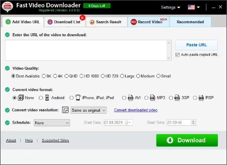 Download your videos, playlists, HD videos and convert with Fast Video downloader.
