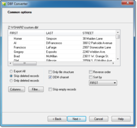Data filtering in DBF Converter is visual. This means the program takes a sample of records in the DBF file and allows you to apply custom filter rules and masks and instantly see the sample changes according to your choice.