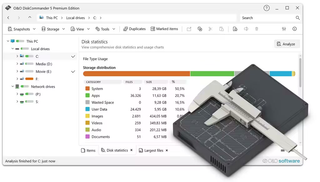 In the end, O&O DiskCommander ensures that "hard drive full" is no longer a mystery, but a clearly solvable problem. They see what really eats up space, consciously decide what needs to stay, and create space where it is most urgently needed - whether on private PCs, on work computers, on external data carriers or in network environments.