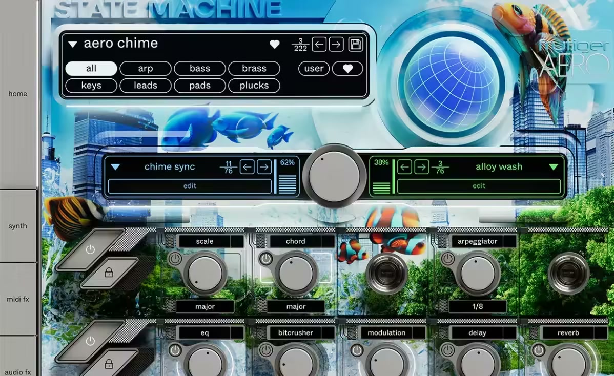• Frutiger Aero's smart MIDI tools make harmony and rhythm seem effortless. Chords lock into place, arpeggios dance, and simple hooks land like iconic signatures.
