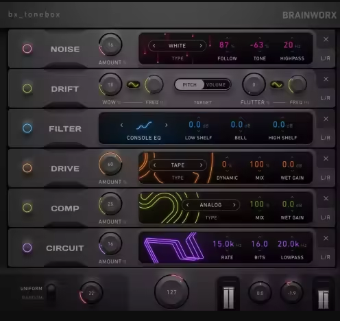 bx_tonebox exists for producers who want their music to feel alive. Digital audio can often be too pristine, and bx_tonebox brings back the charm of imperfection: wobble, grit, ear-catching sonic instability and movement that is often the missing ingredient to make a static mix exciting again.