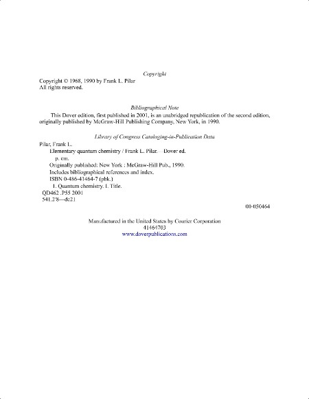 Pilar F Elementary Quantum Chemistry 2ed 2001 | 72.55 MB