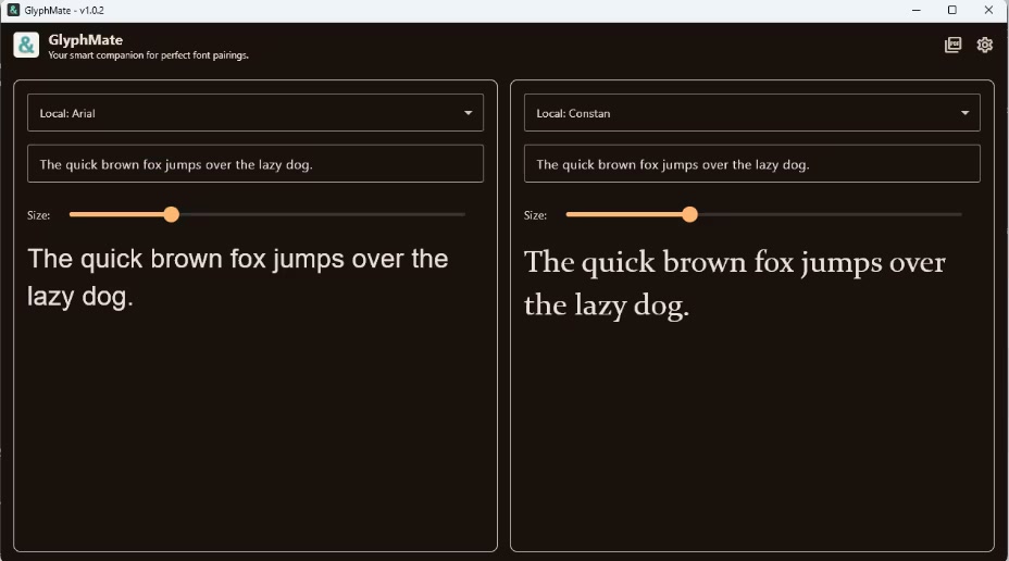 GlyphMate is a powerful, cross-platform desktop application for graphic designers and typographers, built with Flutter. It elevates font management beyond a simple viewer by providing a comprehensive suite for comparing, pairing, and creating specimen sheets for both local and Google Fonts.