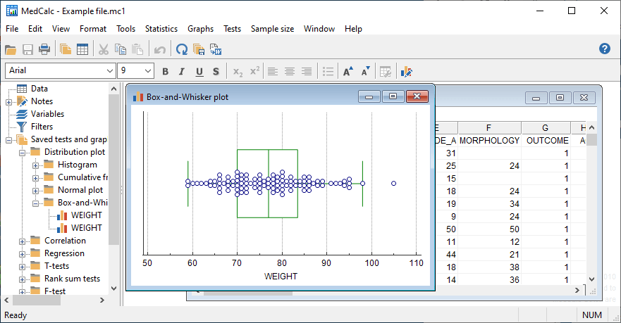 With an integrated spreadsheet with over 100,000 rows, MedCalc is capable of reading and displaying detailed data imported from Excel, SPSS, Dbase, Lotus or extracted from SYLK, DIF or text files. The information can be easily sorted, filtered or edited.