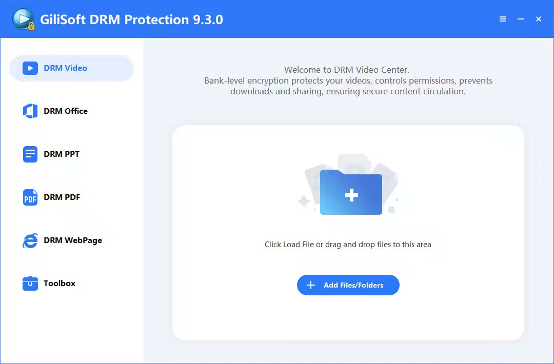 Free Video DRM Protectioncan easily encrypt virtually any kind of Video, Audio, Image formats. You can protect MP4, AVI, MKV, WMV, MTS, RMVB, MXF, VOB,FLV, MPEG, TS, MP3, AAC, AC3, OGG, WMA, JPG, BMP, PNG... with the best free media encryption solution.