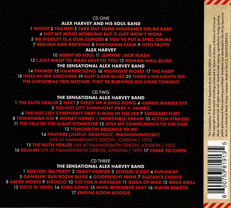 Эта трёх дисковая компиляция как нельзя лучше показывает всю недолгую, но плодотворную карьеру Алекса Харви с 1963 по 1977 года, когда из-за проблем с позвоночником он был вынужден покинуть свою группу.