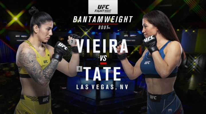 В 2016 году Миша Тэйт после поражений от Аманды Нуньес и Ракель Пенингтон заявила о завершении карьеры, но спустя пять лет вернулась в октагон. На турнире UFC on ESPN 26 она победила Марион Рено техническим нокаутом в третьем раунде и ворвалась на восьмую строчку рейтинге бойцов легчайшего дивизиона. Если учитывать, что россиянка Яна Куницкая взяла отпуск в связи с беременностью, то еще одна победа выведет Тэйт в топ-5. Ее соперница из Бразилии Кетлин Виера на данный момент находится на седьмой строчке. В последнем бою она уступила Куницкой единогласным решением судей.