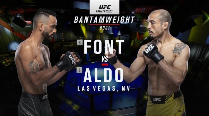 Бывший чемпион полулегкого дивизиона и настоящая легенда смешанных единоборств, Алдо, все еще полон решимости вновь попытаться завоевать титул легчайшего веса. В данный момент бразилец ведет серию из двух побед и занимает пятую позицию в рейтинге дивизиона. Роб Фонт, хоть и не обладает такими регалиями как его именитый соперник, но это не делает его менее опасным в поединке. В своем последним поединке против Коди Гарбрэндта, Фонт продемонстрировал прекрасно отточенные ударные навыки и хладнокровное следования плану на бой.